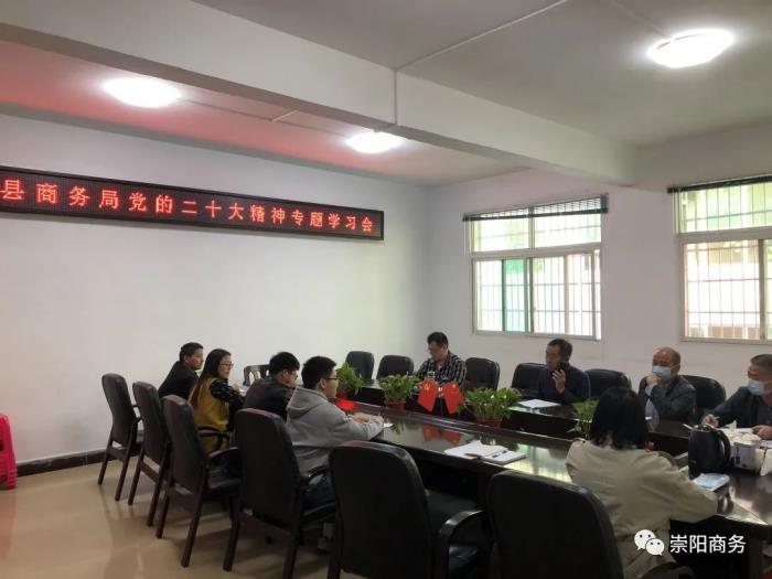 会议强调,要采取集体学习与个人自学相结合的形式,在全局迅速掀起学习党的二十大精神的热潮,切实把党的二十大精神落实到各项商务工作中,为建设产业强、生态好、社会稳、百姓富的幸福崇阳贡献商务力量。